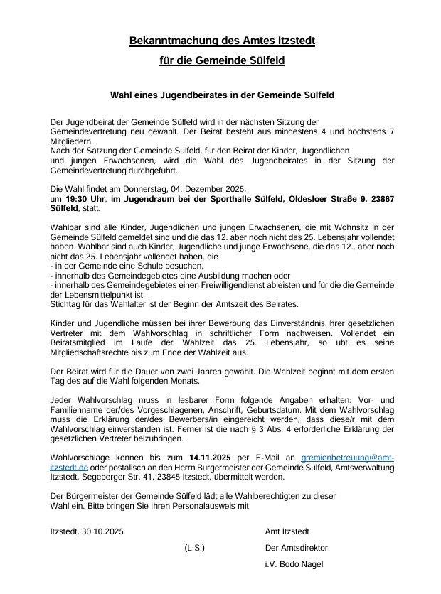 Hier informiert die Gemeinde Sülfeld regelmäßig über Neuigkeiten aus der Region.