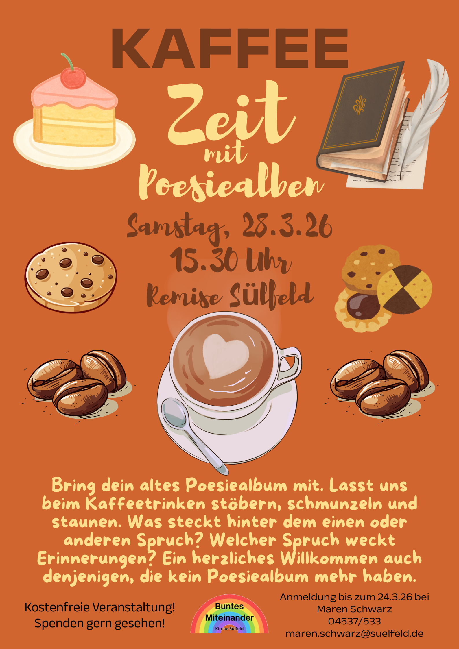 Kaffeezeit! Bring dein Poesiealbum mit. Lasst uns stöbern, schmunzeln und staunen. Was steckt hinter dem eine oder anderen Spruch? Ein herzliches Willkommen auch denjenigen, die kein Poesiealbum mehr) haben.