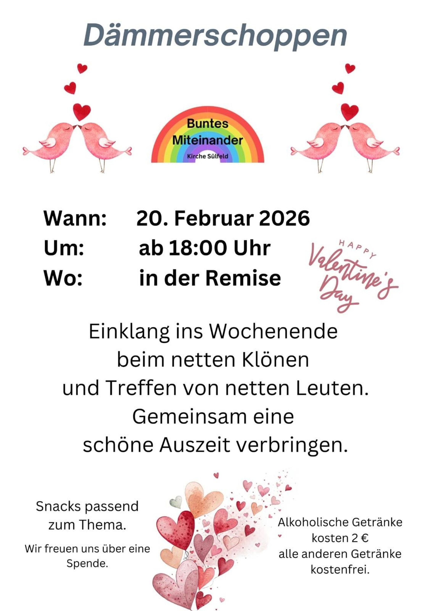 Remise beim Pastorat Sülfeld Am Markt 16, SülfeldWir bereiten mit Kindern ein Essen für die Eltern vor--> Mutter- und Vatertag sind ja nicht fern. Anmeldung erforderlich. Näheres bitte zu gegebener Zeit dem Plakat entnehmen.